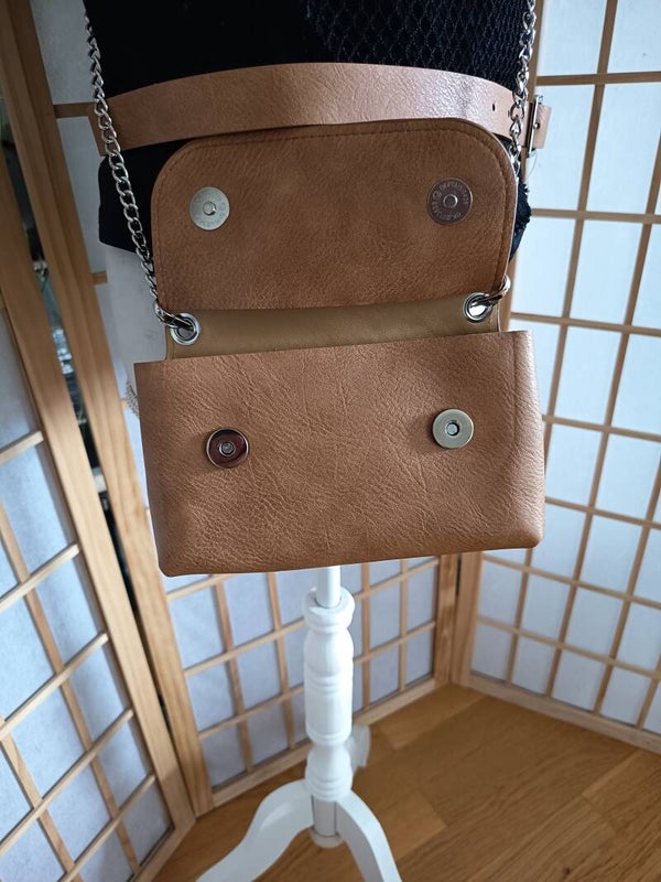 Funktionale Umhängetasche, die in wenigen Griffen zu einer Gürteltasche wird oder als Tragetasche und Gürtel zwei Teile zu verwenden ist. Ideal für Gelbeutel, Schlüsseln, Handy kommt auf die Größr an. Karabiner sind abnehmbar sowie der Gürtel.